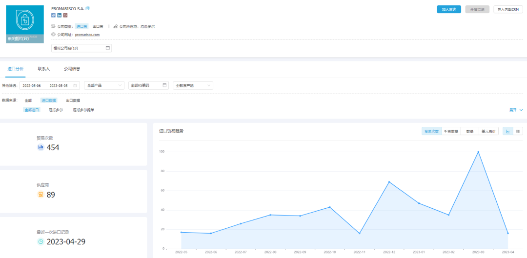 将目标客户加入【商情雷达】,清晰分析潜在客户的采购时间、采购对象、采购数量、采购价格、采购频率、采购关系,精准刻画客户画像,为开发和跟进客户给予决策依据。