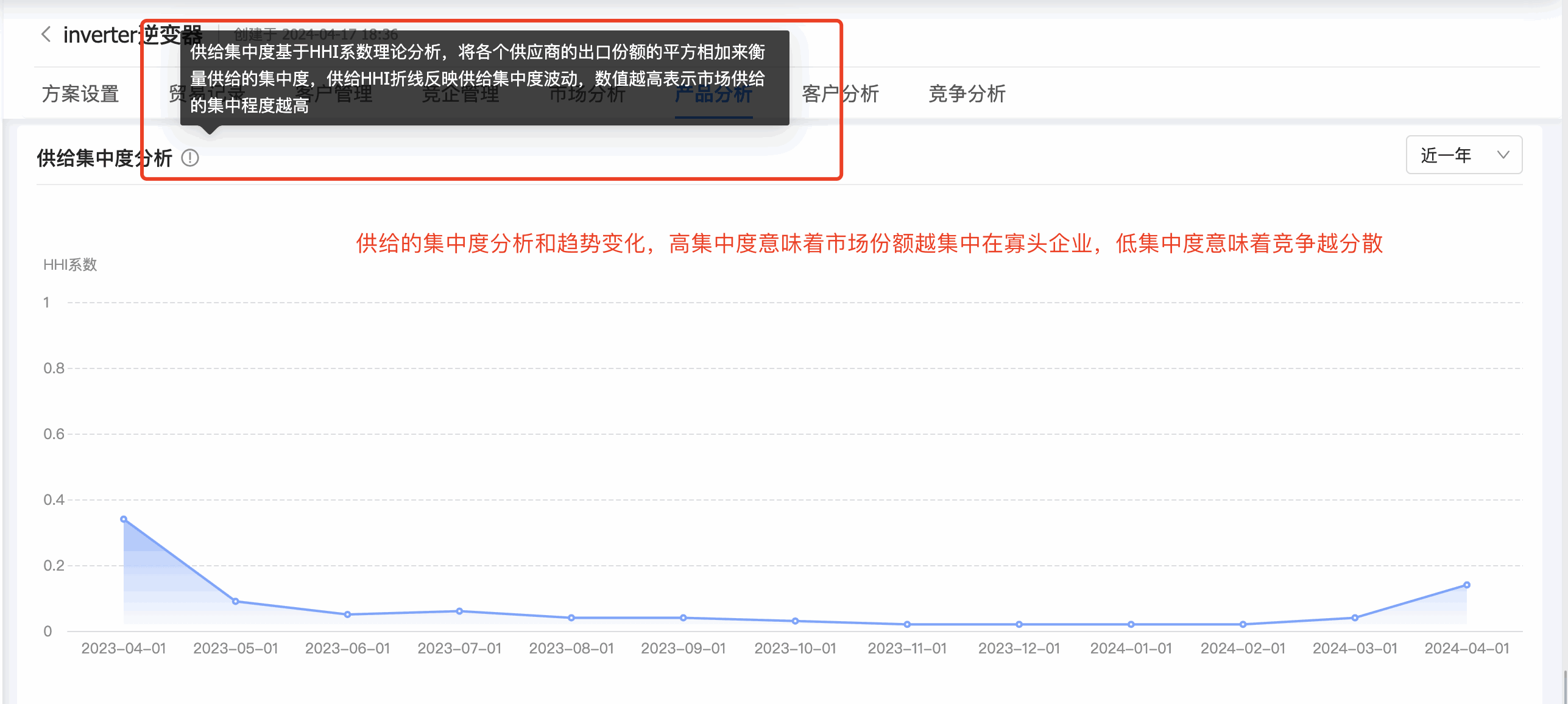 4. evo真人视讯商情洞察产品分析新增「供给集中度」:企业可以分析市场上供应商的集中程度。